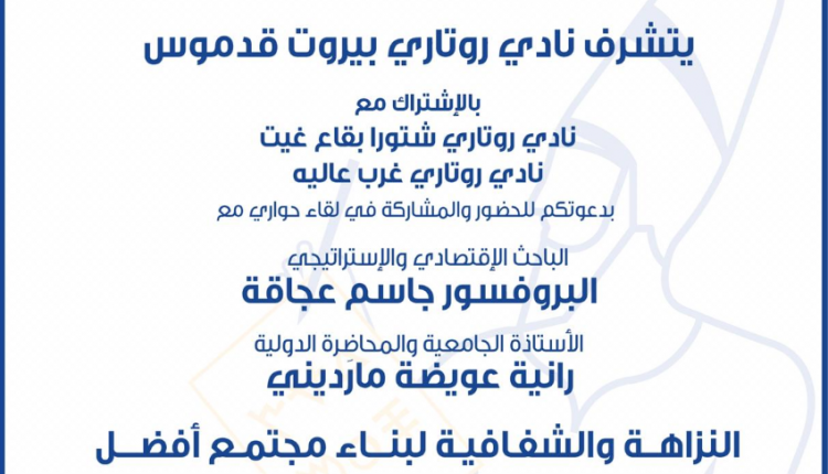 أبرز المواضيعخبرمحاضرات ندوة للبروفسور جاسم عجاقة في نادي روتاري بيروت قدموس By المحررّ الإقتصادي Last updated يونيو 18, 2019 Share