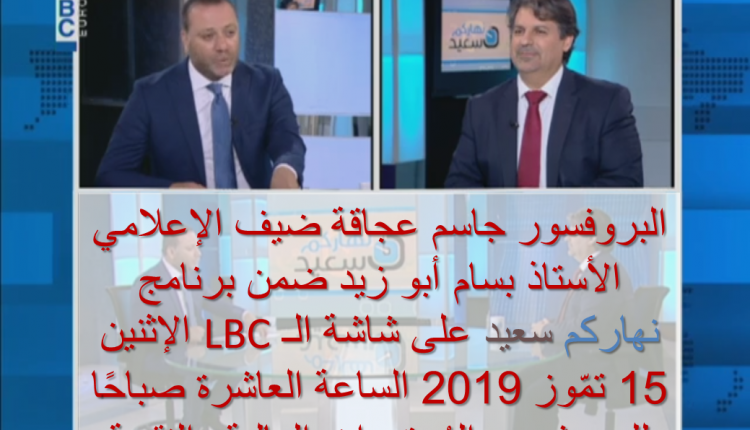 أبرز المواضيعخبر البروفسور جاسم عجاقة ضيف برنامج نهاركم سعيد الإثنين 15 تموز 2019 By المحررّ الإقتصادي Last updated يوليو 14, 2019 Share