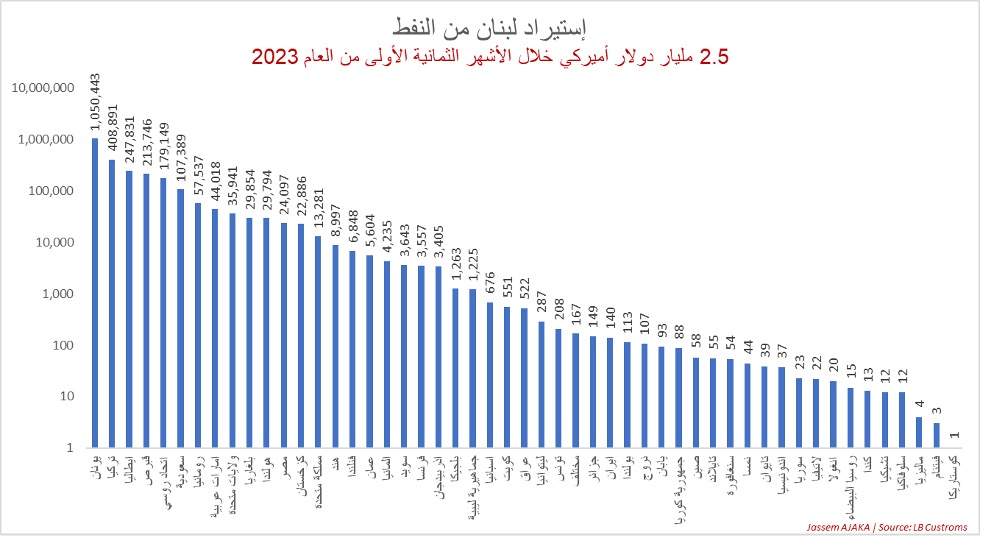 وإذا كان ورود بعض أسماء الدول في هذه اللائحة منطقي، إلّا أنّ العديد من هذه الأسماء لا ينطبق عليها صفة مُصدّر للنفط (بغضّ النظرّ عن النوع) وهو ما يطرح أسئلة عن التبويب وعن إيرادات الدولة من هذا الإستيراد التي لا توازي 10% مما يجب أن تستحصل عليه، ناهيك عن مُشكلة التهرّب الجمركي والتي تجعل الأرقام الفعلية أكبر من تلك المبوبة.