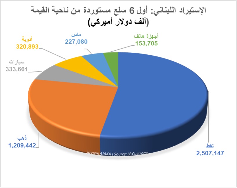 ثالثًا – لم يُعالج مشروع موازنة العام 2024 مُشكلة الإستيراد التي تُعدّ السبب الرئيسي في خروج الدولارات من لبنان. فمثلًا لبنان الذي يُشكّل ناتجه المحلّي الإجمالي بحدود العشرين مليار دولار أميركي سنويًا (لا توافق من المؤسسات الدولية على رقم الناتج المحلّي الإجمالي) إستورد العام الماضي ما يوازي ناتجه المحلّي، ونصف الناتج المحلّي الإجمالي في الأشهر الثمانية الأولى من هذا العام! وبالنظّر إلى السلع والبضائع الستّ الأولى المُستوردة، نرى أنّ النّفط يحتلّ المرتبة الأولى مع 2.5 مليار دولار أميركي خلال الأشهر الثمانية الأولى من العام 2023، والذهب في المرتبة الثانية مع 1.2 مليار دولار أميركي، والسيارات مع 333.7 مليون دولار أميركي، والأدوية مع 320.9 مليون دولار أميركي، والماس 227.1 مليون دولار أميركي، وأجهزة الهاتف 153.7 مليون دولار أميركي.