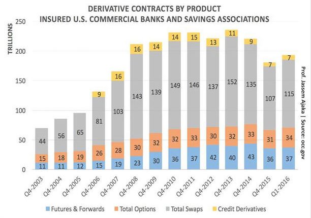 يتعرّض القطاع المصرفي الأميركي لعقود المشتقات في الأسواق المالية. ومُجرّد سماع أن هذا التعرّض يفوق الـ ٢٠٠ تريليون دولار أميركي، يُطرح السؤال عن المُغامرة التي يقوم بها هذا القطاع ودور الرقابة المصرفية في الولايات المُتحدة الأميركية.