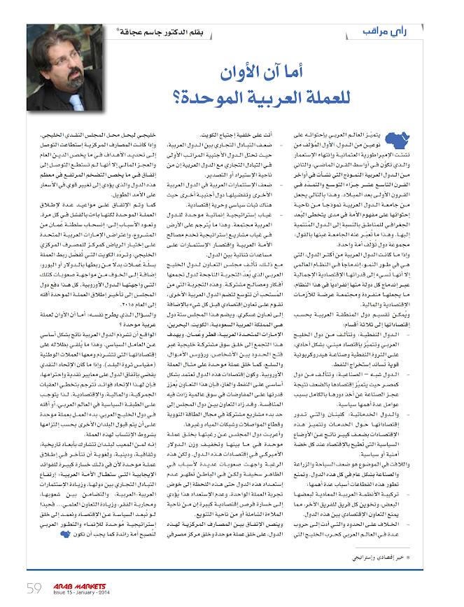 مقالات أما آن الأوان للعملة العربية الموحدة؟ By بروفسور جاسم عجاقة Last updated أبريل 5, 2019 مجلة أسواق العرب / بروفسور جاسم عجاقة Share