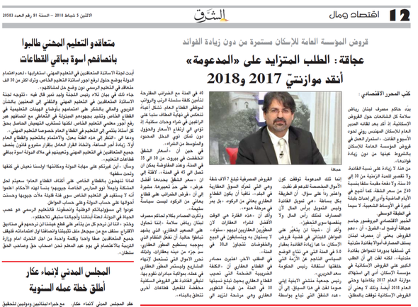 عجاقة: الطلب المتزايد على المدعومة أنقد موازنتيّ 2017 و2018