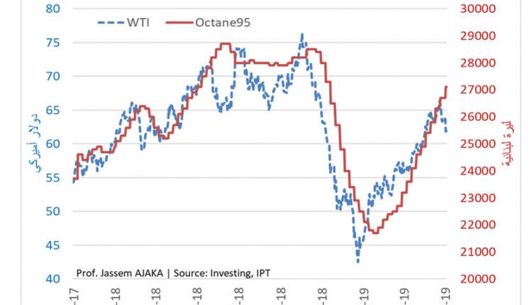 لبنانياً، بلغت فاتورة إستيراد المُشتقات النفطية 4.4 مليارات دولار أميركي في العام 2018. ويأتي ارتفاع أسعار النفط ليرفع حكماً من الكلفة على المواطن بالدرجة الأولى حيث نرى التداعيات على أسعار صفيحة البنزين التي ارتفعت 5000 ليرة لبنانية منذ بداية هذا العام لتزيد من كلفةٍ في الأساس هي عالية نتيجة زحمة السير اليومية، وبالتالي فإنّ ارتفاع سعر الصفيحة 5000 ليرة لبنانية على مدّة عام يُقلّل من القدرة الشرائية للمواطن اللبناني بقيمة 330 مليون دولار أميركي. أضف إلى ذلك الخسائر التي ستطال خزينة الدولة نتيجة شرائها المحروقات لوزاراتها ومؤسساتها كما ولمؤسسة كهرباء لبنان.