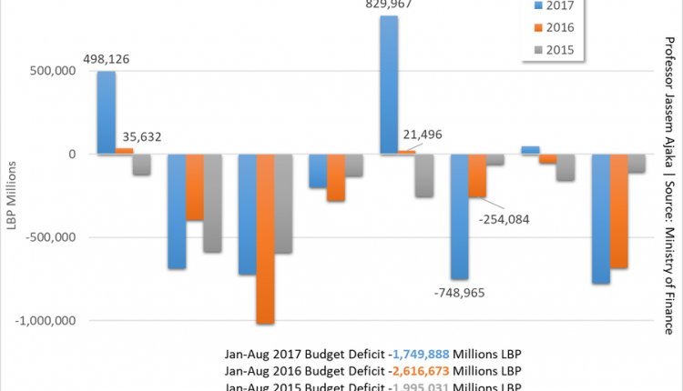 تُظهر أرقام وزارة المال أن عجز الموازنة في الأشهر الثمانية الأولى من العام 2017 سجّل إنخفاضًا بقيمة 578 مليون دولار أميركي إضافة إلى إنخفاض عجز الخزينة على الفترة نفسها بقيمة 569 مليون دولار أميركي. إلا أن التحليل يُظهر أن أسباب هذه الإنخفاضات هي أسباب آنية ولا تنمّ عن تحسن الوضع المالي العام.