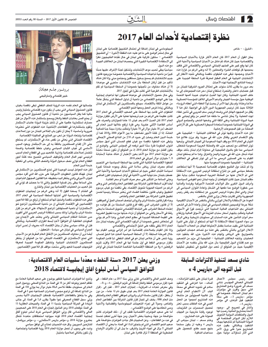 يمكن القول أن العام 2017 كان العام الأكثر غزارة بالأحداث السياسية والإقتصادية حيث كان هناك كمّ هائل من الأحداث السياسية والأمنية التي كان لها وقع كبير على المشهد اللبناني، السياسي والإقتصادي التي فاقت بحجمها كل توقعات الخبراء والمُحللين. إلا أنه وعلى الرغم من غزارة هذه الأحداث وحجمها، تبقى هذه الخطوات ناقصة وبالتالي تتجه الأنظار إلى الإنتخابات النيابية في العام المُقبل لمعرفة قدرة السلطة الجديدة على ترجمة النتائج الإيجابية لهذه الأحداث. بعد مرور ما يقارب ثلاث سنوات على إحتلال الجرود الشرقية للبنان من قبل عصابات داعش والنصرة، إستطاع لبنان دحر هذه المجموعات إلى ما خلف الحدود اللبنانية. وكان لهذا الحدث تداعيات عديدة أهمها اللُحمة الوطنية حول مؤسسة الجيش والدعم الأميركي اللافت للمؤسسة العسكرية سلاحًا وعتادًا. ولم يكن لهذا الأمر أن يحدث لولا الغطاء الذي أعطاه الرؤساء الثلاثة حيث كان لرئيس الجمهورية الدور الأول في الواجهة، لكن هذا لا يُقلّل من المجهود الهائل الذي وضعه الرئيس سعد الحريري في تأمين غطاء لهذه العملية. ولا يُمكن تناسي ما خلفّه هذا النصر من وقع إيجابي على هيبة الدولة اللبنانية وعلى الثقة التي وضعها الشعب والمُجتمع الدولي في الدولة اللبنانية خصوصًا إستعادة السيطرة العسكرية على كل الأراضي الُمحتلّة من قبل المجموعات الإرهابية. لكن هذه الأحداث واكبها توتّر في العلاقات اللبنانية – الخليجية على وقع الإنقسام العربي وقتال حزب الله في سوريا. وقد برزت طلائع هذا التوتر في العام 2016 مع وقف الهبة السعودية إلى الجشيش اللبناني، وتبعها توتر العلاقات مع تصعيد حزب الله والمملكة العربية السعودية للخطاب السياسي مما دفع بالدول الخليجية إلى محاولة إلزام لبنان بأخذ موقف تجاه تدخل حزب الله في سوريا واليمن والعراق. وهذا ما لم يستطع لبنان القيام به على المستوى الرسمي ما أدّى إلى توتّر إضافي في العلاقات اللبنانية – الخليجية خصوصًا السعودية منها. وإذ لم تتخّذ دول الخليج خطوات إقتصادية تصعيدية إلا أنها إستطاعت بضغط سياسي كبير من إنتزاع إستقالة الرئيس الحريري. هذه الإستقالة التي تمّ الإعلان عنها من المملكة العربية السعودية شكّلت بداية نفق مُظلم للبنان حيث كانت التوقعات أن يتجه لبنان نحو الفوضى السياسية. وأدركت الدول الكبرى مثل الولايات المُتحدة الأميركية وفرنسا وألمانيا مدى خطورة الوضع مما دفعها إلى التدخل وإعادة التوازن السياسي إلى لبنان والذي تمثّل بعودة الرئيس الحريري عن إستقالته بعد رفض رئيس الجمهورية والتي إقترنت بإعلان وزاري للنأي بالنفس. العودة عن الإستقالة والإعلان الوزاري بالنأي بالنفس عن الأحداث الإقليمية شكّلا جرعة أوكسيجين للنظام السياسي في لبنان وأعادا الأمل إلى الشعب اللبناني بعد التداعيات المالية السلبية التي تُرّجمت فورًا في الأسواق المالية وتمثّلت بإنهيار أسعار سندات الخزينة في الأسواق المالية وإرتفاع سعر أدوات التأمين على هذه السندات إلى مستويات تاريخية. وعلى الرغم من سواد الصورة لحظة الإستقالة إلا أنها لم تستطع أن تؤثّر على الليرة اللبنانية التي بقيت صامدة بفضل الإحتياط الهائل من العملات الأجنبية. الإعلان الوزاري بالنأي بالنفس بقي هشًا مع تصاعد هجمات الحوثيين بالصواريخ على الرياض وإتهام هذه الأخيرة حزب الله بتنفيذ هذه العمليات. وتتجّه العلاقات اللبنانية – الخليجية إلى مزيد من التصعيد مع عدم إقتناع الدول الخليجية بأن حزب الله ينأى بنفسه عن الأحداث الإقليمية حيث من المُتوقّع أن تعمد دول الخليج إلى تخفيض تمثيلها الديبلوماسي في لبنان إضافة إلى إحتمال التضييق إقتصاديًا على لبنان في حال إستمرّ الوضع على ما هو عليه. هذه النقطة الأخيرة – أي التضييق الإقتصادي – ستكون كارثية على لبنان في حال نفّذها الخليجيون نظرًا إلى الإستفادة الإقتصادية الكبيرة التي يحصدها لبنان من العلاقات الجيدة مع هذه الدول. سياسيًا يبقى تحديد موعد الإنتخابات وت