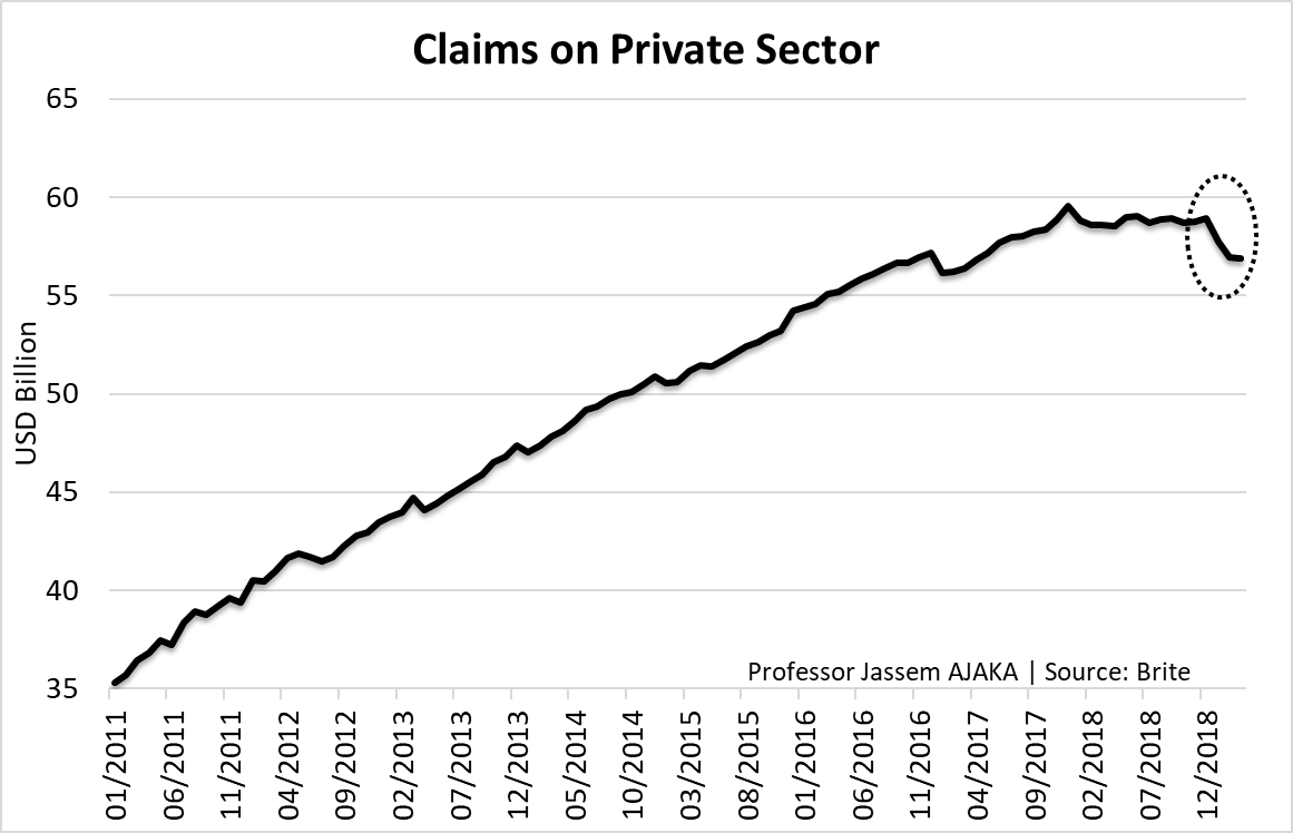 في لبنان يتمّ تمويل عمودي الاقتصاد أي الاستثمار والإستهلاك بشق كبير من خلال القروض المصرفية. وقد وصلت هذه القروض في العام 2017 إلى حدود الـ 60 مليار دولار أميركي وهو رقم يفوق الناتج المحلّي الإجمالي. وتُشير الأرقام إلى تراجع القروض في لبنان مع انخفاض بلغت قيمته 4 مليار دولار أميركي على 4 أشهر خلال هذا العام! هذا الانخفاض آت من منطلق بدء مرحلة رفع المديونية التي بدأتها المصارف والتي هي صعبة جدا على الاقتصاد وبالتحديد على الاقتصاد اللبناني الذي كما وسبق وذكرناه في مقالاتنا السابقة يعتمد بالتمويل على المصارف (Banking based Economy).