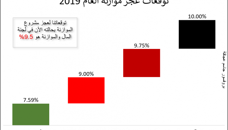 إذًا في ظل سقوط إقتراح القرض بـ 11 ألف مليار ليرة بفائدة 1% والذي كان ليُحمّل مصرف لبنان ما قيمته 912 مليون دولار أميركي، وفي ظل سقوط رسم الـ 2% على الإستيراد والذي كان سيؤمّن ما بين 200 إلى 400 مليون دولار أميركي، وفي ظلّ التوجّه إلى إسقاط البنود المُتعلّقة بالعسكريين، من المتوقّع أن يرتفع العجز في مشروع موازنة العام 2019 بعد مناقشته وإقراره في لجنة المال والموازنة إلى 9.5%!