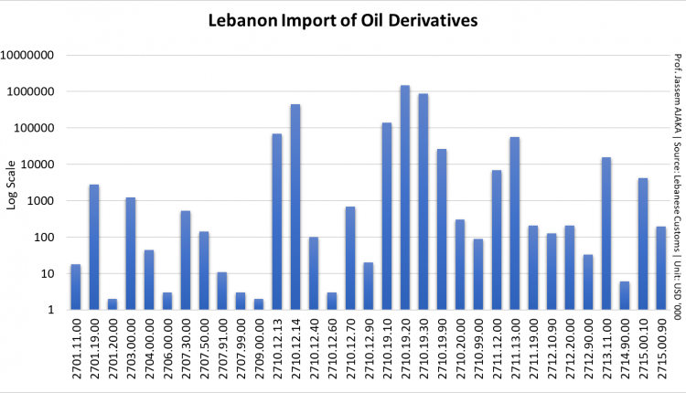 فعلى سبيل المثال، تأتي المُشتقات النفطية على رأس السلع المستوردة من الخارج مع 3.1 مليارات دولار أميركي من أصل 8.9 مليارات دولار أميركي مُستوردة في الأشهر الخمسة الأولى من العام 2019. وقد يظنّ البعض أنّ هناك إستحالة فرض رسوم على المُشتقات النفطية نظراً إلى أن لا بديل عن هذا الإستيراد وقد يكون وقع الرسوم على المواطن كارثياً!