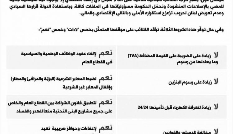 ويبقى القول أن المواطن اللبناني يتلقى كل هذه المعلومات، ينتابه شعور متناقض فهو من جهة مسرور أن هناك إصلاحات ستقوم بها الدوّلة، ومن جهة أخرى هو مُتخوّف من أن تكون هذه الورقة إبرة مورفين نظرًا إلى التجارب السابقة. وإذا كان رئيس الجمّهورية من أكثر الذين يدفعون بإتجاه تنفيذ هذه الإصلاحات، إلا أن تعديلات إتفاق الطائف على الدستور جعل القرار اللبناني توافقياً بين الطوائف وحتى بين الأحزاب. لذا نستنتج أن تنفيذ هذه الإصلاحات هو رهن موافقة جميع القوى السياسية التي أعطت محاضرات في محاربة الفساد في الإستحقاقات النيابية السابقة وخلال جلسة الثقة وجلسة الموازنة.