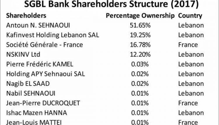 ففي أوائل العقد الماضي، قامت العديد من المصارف الفرنسية بالإنسحاب من السوق اللبناني عبر بيع حصصها في المصارف اللبنانية وعلى رأسها مصرف «BNP»، وسوسيته جنرال حيث تم إنسحاب المصرف الأول بالكامل، في حين حافظ المصرف الثاني على حصة من رأسمال المصرف اللبناني «SGBL». هذه الخطوة تمّ تبريرها بالمحافظة على تصنيف عالي للمصارف الفرنسية نظرًا إلى التصنيف المُنخفض أنذاك للبنان. وبالتحديد فيما يخص بنك سوسيته جنرال، قامت المجموعة ببيع 81% من حصتها إلى عائلة الصحناوي لتُصبح في النهاية حصّة المجموعة في رأسمال المصرف 158 مليون يورو.
