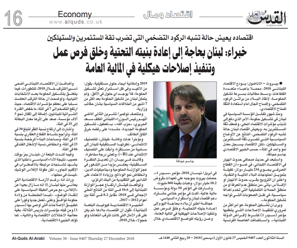 وعن رؤيته للوضع الاقتصادي خلال 2019 وإمكانية ايجاد حلول مستقبلية، يقول: من الأكيد وفي ظل استمرار تعثّر تشكيل الحكومة، فلا يوجد أي حلول في الآفق. ولم يتمكن لبنان من تشكيل الحكومة بعد أكثر من 7 أشهر من الخلافات السياسية بشأن حقائب وزارية.