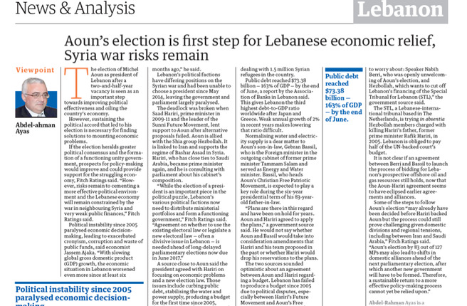 Aoun’s election is first step for Lebanese economic relief, Syria war risks remain