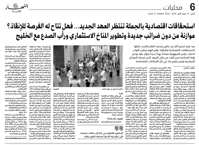 بعد فراغ استمر أكثر من عامين ونصف العام تراكمت خلالها الاستحقاقات الاقتصادية والمالية، يلتئم اليوم مجلس النواب لانتخاب رئيس للجمهورية مفتتحاً عهداً جديداً يعوّل عليه بوضع رؤية اقتصادية تخرج البلاد من براثن الجمود الذي فرضته الاوضاع السياسية وترجم بتراجع حاد في كل القطاعات الاقتصادية.