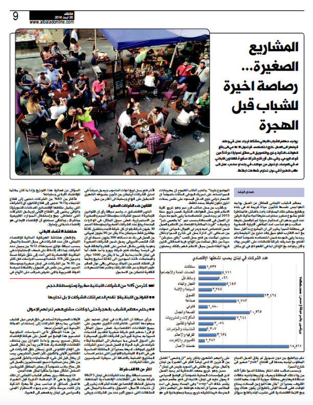 يواجه معظم الشباب اللبناني مشكلة ايجاد عمل في وطنه فيضطر الى العمل خارج اختصاصه، فيتحول الاعلامي الى بائع للهواتف الذكية وخريج التسويق الى سائق لسيارة اجرة لتأمين قوته اليومي، وفي حال قرر فتح شركة صغيرة، فالقانون اللبناني له في المرصاد، ليتحول من موظف في بلده او صاحب عمل الى طالب للهجرة في دول تحترم شهادات ابنائها. معظم الشباب اللبناني العاطل عن العمل يواجه الهواجس نفسها لتأمين حياة كريمة له في بلده وبالطبع معظم تلك المحاولات باءت بالفشل، فالمخاطرة لفتح مشروع صغير ستترتب عليها اعباء مالية، فيقرر عدد كبير منهم الى استئجار سيارة اجرة والعمل عليها. صائب، وهو صاحب احد الملاهي الليلية الصغيرة في منطقة الحمرا يشير الى ان المشروع بدأ قبل سنة مع احد الاقارب، فهو سبق وقد تخرج من الجامعة ولم يجد ما يلبي طموحه ضمن اختصاصه خصوصاً انه قد افتتح مع صديقه شركة للاعلانات على الفيس بوك وكان يتواعد مع الزبائن اما في القهوة او في اي مكان عام، وبالطبع، من دون تسويق لم يلاق العمل النجاح المطلوب ليتجه بعدها الى افتتاح “pub” صغير في شارع الحمرا. وبحسب صائب، فقد اختار منطقة الحمرا نظراً لأنه من رواد تلك المنطقة ويعرف زواريبها ولديه علاقات صداقة فيها وهي منطقة حيوية لا تموت مهما كانت الظروف. معتبراً ان “مثل هذا النوع من المحلات يحتاج للوقت. ففي السنة الاولى بالطبع لن يكون هناك ربح، ومع الازمة الاقتصادية التي تضرب البلد بالطبع سيؤثر الموضوع علينا”. واعتبر الشاب الطموح ان مهرجانات الحمرا تساعد على تحريك الجو في الحانات خصوصاً ان الاسعار تراعي ذوي الدخل المحدود على عكس محلات اخرى تكون لطبقة محددة فقط. وبالقرب من محل صائب قرر عمر وهو خريج كلية الاعلام فتح محل للهواتف الذكية. فعمر خريج سنة 2013 لم يجد ضمن اختصاصه ما يلبي طموحه حيث ان العمل في الصحافة بحسب عمر “ما بطعمي خبز” ويضيف: “قررت المخاطرة للابتعاد عن الاعلام والعمل ضمن اختصاص احبه ويدر لي الاموال، فحياتي تحولت من صحافي الى ادارة محل في شارع الحمرا وخلال سنتين تمكنت من فتح محل للعب “بلاي ستيشن” حيث من خلال تمكنت من الزواج، فيما اصدقائي الذين قرروا البقاء ضمن مجال الاعلام فهم بالكاد يحصلون على راتبهم الشهري، ولكن رغم “ان وضعي” افضل من الآخرين الا انني ايضاً افكر في الهجرة من لبنان واكمال حياتي مع عائلتي في السويد وليس في لبنان”. حسن وهو خريج معهد الفندقية لم يحبذ العمل لدى المؤسسات المحلية خصوصاً ان الوضع السياحي لا يعول عليه في لبنان، فاتجه الى فتح مطعم صغير يقدم خلاله الـ”crep” وفي المساء يعمل في احد المطاعم، معتبراً ان اعتماده هو فقط على المطعم داخل المدرسة، فيما شقيقه خريج برمجة ومعلوماتية قرر هو الآخر فتح محل لبيع ادوات الحاسوب ويعمل صباحاً في احدى الشركات ليتمكن من تأمين مصروفه الشهري لأنه مقبل على الزواج وبحاجة الى اكثر من عمل. القانون ضد الشركات الصغيرةالخبير الاقتصادي د. جاسم عجاقة رأى ان القوانين اللبنانية لا تسمح للشركات متوسطة الحجم والصغيرة من الاستمرارية. فعلى سبيل المثال، في الولايات المتحدة يبلغ عدد الشركات الصغيرة ومتوسطة الحجم 30 مليون شركة، ولو ان كل شركة قامت بتشغيل ثلاثة موظفين فقط سيتمكن ما لا يقل عن 90 مليون اميركي من العمل في بلد عدد سكانه 300 مليون نسمة، اي ان ثلث الشعب الاميركي يعمل ضمن الشركات الصغيرة وهو ما يقضي بشكل اساسي على الفقر والبطالة، فيما في فرنسا يمكنك فتح شركة بيورو واحد فقط، اما في لبنان فأنت بحاجة الى ما لا يقل عن 1000 دولار والمعاملات تأخذ اسبوعين الى ثلاثة اسابيع وطبعا الى افتقاد الدعم من الدولة. بينما في باقي دول العالم تقوم الدولة بدعم تلك الشركات وتقدم لها التسهيلات الكافية لتتمكن من الاستمرار. ورأى عجاقة ان الشركات في لبنان تعتمد على مجهودها الخاص. فالشركات الكبرى تهيمن على جميع القطاعات الاقتصادية. فعلى سبيل المثال لو قرر احدهم فتح شركة صغيرة لتقديم الخدمات فسيواجه محاربة كبيرة