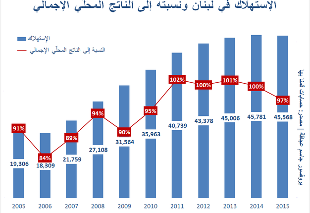 تُشير أرقام الإستهلاك النهائي للأسر في لبنان والتي قمنا بحسابها من خلال مكونات الناتج المحلّي الإجمالي، أن اللبناني يستهلك أكثر مما يُنتج مُرجحّة وجود مداخيل موازية. ويبقى غياب أرقام رسمية لقياس الإستهلاك العائق الأساسي لرسم أي سياسة إقتصادية توجيهية لتحفيز القطاعات الإنتاجية. إن الثورة الإجتماعية التي ينتظرها الجميع كنتيجة لتدهور النشاط الإقتصادي، لن تكون على الموعد. يعود السبب بكل بساطة إلى حجم الإستهلاك النهائي (المنتجات المُعمّرة، الألبسة، الطعام، والخدمات…) الذي فاق حجم الناتج المحلّي الإجمالي في الأعوام 2011 إلى 2014. وقد يتساءل المواطن من أين يمكن معرفة حجم الإستهلاك النهائي في الوقت الذي لا توجد فيه أرقام رسمية. هذه النتيجة يمكن بلوغها من خلال احتساب الإستهلاك النهائي للأسر في لبنان (بطريقتين مختلفتين) من خلال مكونات الناتج المحلّي الإجمالي حيث أظهرت الحسابات أن الإستهلاك النهائي من العام 2005 إلى العام 2015 كان كالآتي: 19.3، 18.3، 21.8، 27.1، 31.6، 35.9، 40.7، 43.4، 45، 45.8، و45.6 مليار دولار أميركي بالتوالي من العام 2005 إلى 2015. والغريب في هذه الأرقام أن نسبتها إلى الناتج المحلّي الإجمالي تتأرجح بين 84% و102% مع تخطيها الـ 100% في الأعوام 2011 إلى 2014. هذه الأرقام تتوجب مقارنتها بحسابات البنك الدولي التي تُظهر أن نسبة الإستهلاك إلى الناتج المحلّي الإجمالي تتأرجح بين 83.3 % و89 % في الفترة نفسها (بإستثناء رقم العام 2015 الذي لم يصدر بعد من قبل البنك الدولي). وبإعتقادنا، فان حسابات البنك الدولي ليست دقيقة والسبب يعود إلى عاملين: أولاً إعتماد البنك الدولي على توقعاته في ما يخصّ النمو أكثر من إعتماده على الأرقام المُحققة وكلنا يعلم أن هناك فرقا بين ما تمّ تحقيقه وبين توقعات البنك الدولي. والثاني يتعلق بالإقتصاد الموازي الذي لم يأخذه البنك الدولي بالإعتبار والذي شجّع الإستهلاك عبر مداخيل لم يتمّ أخذها في الناتج المحلّي الإجمالي. وكدليل على عدم دقة أرقام البنك الدولي يكفي النظر إلى الإستهلاك في العام 2006 الذي إزداد بحسب البنك الدولي مع العلم أن الأرقام الرسمية الصادرة عن الحسابات الوطنية التي كانت تقوم بحسابها رئاسة مجلس الوزراء، تُظهر العكس. إذا ما نظرنا إلى تحويلات المُغتربين، نرى أنها دعمت هذا الإستهلاك ولو بنسبة تتراوح بين 16 إلى 25 % حيث أن النقلة النوعية في هذا الإستهلاك تعود بشكل ملحوظ إلى تحويلات المغتربين خصوصاً بين الأعوام 2005 إلى 2010. لكن هذا السبب ليس الوحيد الذي يُبرر الإستهلاك المُرتفع. فسلوك المُستهلك اللبناني دفعه إلى تمويل قسم كبير من إستهلاكه، خصوصاً المنتوجات المُعمّرة، عبر الإقتراض. وما فرض عليه بشكل ميكانيكي صرف مدخوله بشكل شبه كامل وهذا الأمر يشمل بالدرجة الأولى الطبقة الوسطى التي تفوق نسبتها الـ 60% من الشعب اللبناني. لكن كيف للمواطن اللبناني إستهلاك أكثر من الناتج المحلّي الإجمالي؟ هذا الأمر مُعلّل بحجتين: زيادة القروض الإستهلاكية للقطاع الخاص والإقتصاد غير الرسمي والذي يسمح بمداخيل غير مُسجّلة في الحسابات الوطنية. إذا ما نظرنا إلى حجم الإستيراد نسبة إلى حجم الإستهلاك النهائي، نرى أن الإستيراد يُشكل من 40 إلى 50 % من الإستهلاك وبالتالي هناك خسارة تفوق العشرة مليارات دولارات سنوياً كان ليستفيد منها الإقتصاد اللبناني لو تمّ دعم القطاعات الإنتاجية التي تُشكّل النسبة الأعلى من الإستيراد! على هذا الصعيد، نرى أن هناك منظومة تجارية موجودة بحكم الأمر الواقع وتمنع القطاعات الصناعية من التطور إن عبر وقف الدعم لهذه القطاعات أو عبر تجميد التشريعات القانونية التي تسمح بتحفيزها. وإذا كنا نسمع الكثير عن تحفيز مناخ الأعمال في خطابات السياسيين، نرى أن هذه التصريحات ليست بجدّية خصوصاً أنها لا تشرح فعلاً كيفية تحفيز مناخ الأعمال بالتحديد خصوصاً أن أي تحفيز يجب أن يهدف بالدرجة الأولى إلى تبديل الإستهلاك من الإستيراد الى الإستهلاك من الإنتاج المحلّي. وهنا تكمن جدّية الرؤيا الإق
