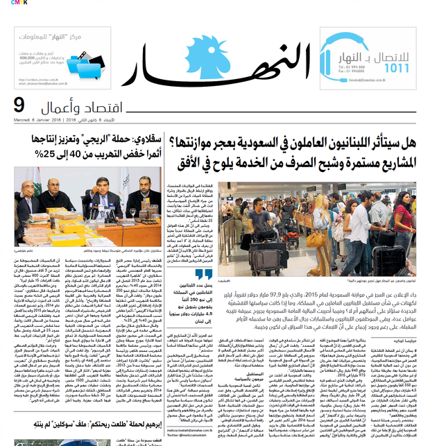 يختصر رئيس هيئة تنمية العلاقات الاقتصادية اللبنانية – السعودية إيلي رزق الإجابة عن تلك التساؤلات بتأكيد أن اللبنانيين لن يتأثروا كثيراً بهذا الموضوع أقله في المدى القصير، إذ انَّ السعودية مصمّمة على المضي قدماً في المشاريع التي يعمل فيها هؤلاء وتخصيص ميزانيات لها، حتى وان حددت موازنة السنة الجارية الإنفاق بواقع 840 مليار ريال، انخفاضاً من 975 ملياراً في 2015.