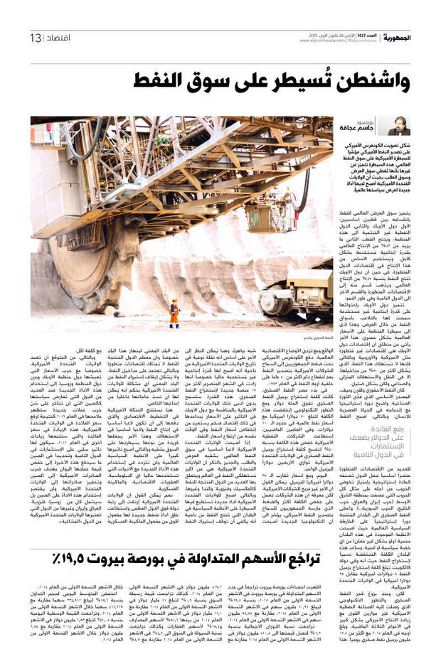 وهنا يُمكن النظر إلى الأمر على أساس أنه نقلة نوعية في تاريخ الولايات المُتحدة الأميركية من ناحية أنه أصبح لها قدرة إنتاجية غير مُستخدمة حالياً خصوصاً أنها زادت في الشهر المُنصرم أكثر من 17 منصة جديدة لإستخراج النفط الصخري.