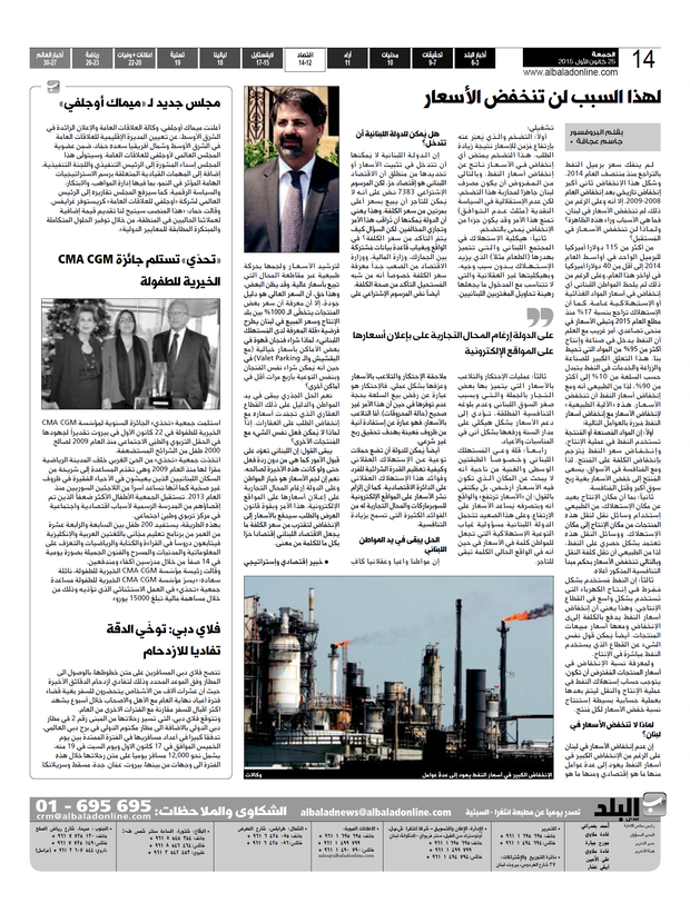 من أكثر من 115 دولارا أميركيا للبرميل الواحد في أواسط العام 2014 إلى أقل من 40 دولارا أميركيا في أواخر هذا العام، وعلى الرغم من ذلك لم يلحظ المواطن اللبناني أي إنخفاض في أسعار المواد الغذائية أو الإستهلاكية عامة. كما أن الإستهلاك تراجع بنسبة 17% منذ مطلع العام 2015 وتبقى الأسعار في منحى تصاعدي. أمر غريب مع العلم أن النفط يدخل في صناعة وإنتاج أكثر من 95% من المواد التي تُحيط بنا. هذا التعلق الكبير للصناعة والزراعة والخدمات في النفط يتبدل حسب السلعة من 10% إلى أكثر من 90%، لذا من الطبيعي أنه ومع إنخفاض أسعار النفط أن تنخفض الأسعار. هذه “الآلية الطبيعية” لإنخفاض الأسعار مع إنخفاض أسعار النفط مُبررة بالعوامل التالية:
