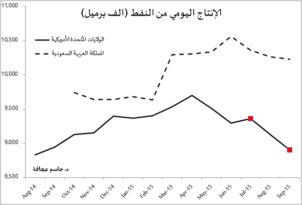 وخطة خفض أسعار النفط العالمية ما كانت لترى النور لو لم تعمد المملكة العربية السعودية الى زيادة انتاجها بشكل ملحوظ في أوائل كانون الثاني 2015 حيث ارتفع هذا الانتاج من 9600 الى 10500 الف برميل في اليوم في حزيران 2015. وهذا الأمر بالطبع مُمكن تقنياً نظراً للقدرة الانتاجية غير المُستخدمة التي تمتلكها المملكة العربية السعودية والتي تصل الى مليوني برميل يومياً.