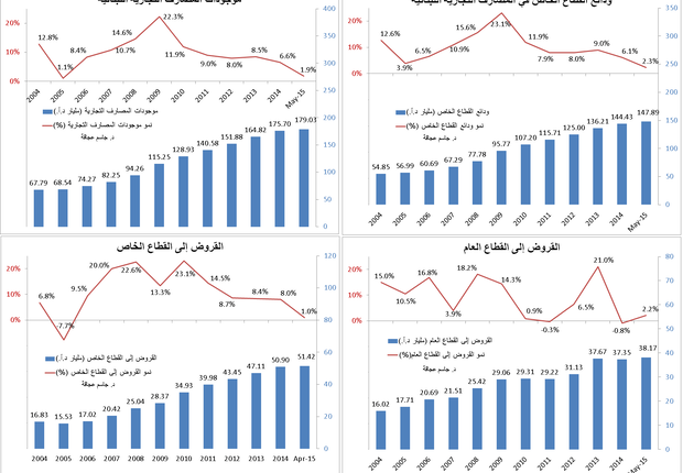 هذا الإزدياد في حجم الودائع أدّى إلى زيادة الضغظ علىالمصارف من ناحية أنه يتوجب عليها دفع فوائد على 148 مليار دولار في الوقت الذيتُقرض فيه 89 مليار دولار أميركي (51.42 مليار دولار أميركي للقطاع الخاص و38.17للقطاع العام). لكن هناك ثلاثة مشاكل في هذه القروض: الأولى تأتي من منطلق أن معظمالقروض للقطاع الخاص هي قروض إستهلاكية إذا أن حصة القروض للإستثمار لا تتجاوز 2مليار دولار أميركي في أحسن حالاتها (منذ العام 2004). وكما نعلم أن الاقتصاد مبنيعلى عامودين أساسيين الإستثمار والإستهلاك، لذا فإن معظم الأموال الإستهلاكية تذهبإلى تمويل الإستيراد وهذا ما يُفسّر العجز التجاري الهائل (17 مليار دولار أميركيفي العام 2014 و5.8 في الأشهر الأربعة الأولى من العام 2015). المُشكلة الثانية في القروض للقطاع العام (42.6% من مجمل القروض) والتي تذهب مباشرة لتمويل عجز الدولة ودينها العام وهذا يعني حرمان الاقتصاد من هذه الأموال التي كانت لتستخدمها الدولةفي إستثمارات عامة تُحرّك فيها الماكينة الإنتاجية. المُشكلة الثالثة التي تواجهالمصارف التجارية تأتي من منطلق كيفية دفع الفائدة على ما يُقارب الـ 60 ملياردولار أميركي من الودائع. وهذه الفوائد لا مجال لدفعها إلا من الفوائد على سنداتالخزينة والفوائد للقطاع الخاص التي لا تكفي بحدّ ذاتها لتغطية الفوائد على 60 مليار دولار أميركي وتؤمن أرباح للمصارف. لذا عمدت جمعية المصارف في شباط الماضيإلى رفع الفوائد على التسليفات بالليرة اللبنانية 4 نقاط أساسية وعلى الدولارالأميركي نقطتين أساسيتين ما يعني أن الأرباح التي تُعلنها المصارف اللبنانيةأصبحت مُبررة بحساب بسيط.