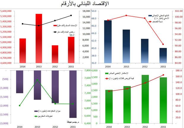 إقتصادٌ هجني لا يخضع لأيّ قانون إقتصادي، هكذا يُمكن وصف الاقتصاد اللبناني، فما بين الحوارات الثنائية القائمة، الخطط الأمنية والتشنّج الحكومي، يُعاني هذا الاقتصاد من قلة الإستثمارات ومن الدين المتزايد. والمُلفت في أرقام العام 2014، تزايد ودائع المصارف التجارية والتي تطرح مشكلة كيفية دفع الفوائد لهذه الودائع. تميّز العام 2014 بكثرة الاحداث التي طالته وأثّرت بشكل كبير في الاقتصاد اللبناني. وإذا كان إنخفاض أسعار النفط هو الحدث الإيجابي الوحيد الذي يُمكن ذكره، إلّا أنّ الأحداث السلبية كثيرة وعلى رأسها النزوح السوري الكثيف والهجمة الداعشية على لبنان.