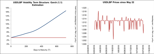 أمًا إحصائياً، فتُشير الحسابات التي قمّنا بها أنّ دينامية تطوُّر سعر صرف الليرة (Stochastic Process) لم تسمح بارتفاع الأسعار. فموجات المعلومات المُتضاربة (Information Choc) والتي تُشكّل السعر، كانت تميل إلى مصلحة مصرف لبنان كما أنّ التوقّعات لنسبة تغيّرات لليرة اللبنانية (Volatility Term Structure using Garch (1,1)) قلّت نسبةً لما كانت عليه سابقاً وتتواجد اليوم في نطاق لا يزيد عن 3.3% لترتفع إلى نسبة أقلّ من 7% لاستحقاقات ثلاث سنوات. وهذه النسب نجدها في مُجمل عملات الدول المُتطوّرة.