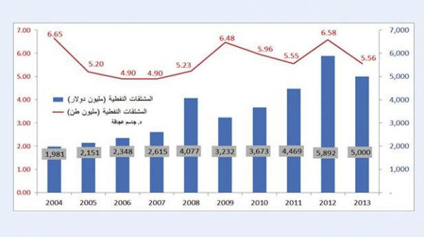 والجدير بالذكر أن فاتورة إستيراد المشتقات النفطية بلغت 5 مليارات دولار عام 2013 لحجم إستيراد 5,56 ملايين طن، مما يعني أن أكثر من ثلث الموازنة يذهب إلى شراء المشتقات النفطية، وهذا الأمر يؤدي إلى الإستنتاج أن لبنان يستطيع تحقيق نسبة نمو إضافية بما بين 1 في المئة و 2 في المئة من خلال تخفيف كلفة الفاتورة الحرارية.