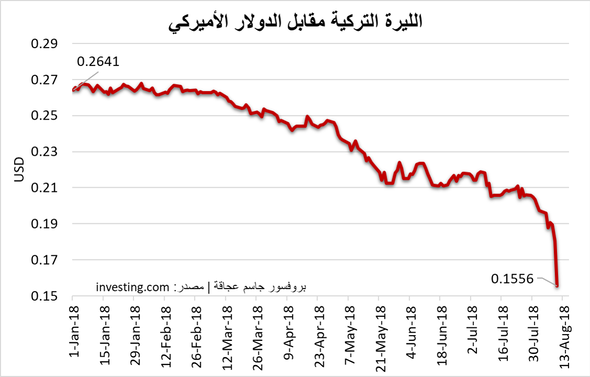 خسرت الليرة التركية من قيمتها 41% منذ بداية العام 2018. وتأتي هذه الخسارة نتيجة عوامل سياسية على رأسها موقف تركيا من قطر وقضية القس الأميركي ولكن أيضًا نتاج التعديلات الدستورية الأخيرة التي قلّصت من إستقلالية السياسة النقدية وجعلتها رهينة القرار السياسي.