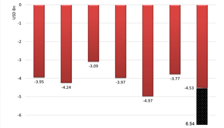 عجز الموازنة تخطّى 6 مليارات دولار في 2018