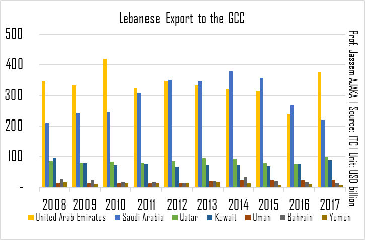 سادسًا – كلفة الصادرات والتي تتضمّن الخسارة في الصادرات إلى الدوّل الخليجية إضافة إلى كلفة التصدير الإضافية المدعومة من قبل الدوّلة اللبنانية.