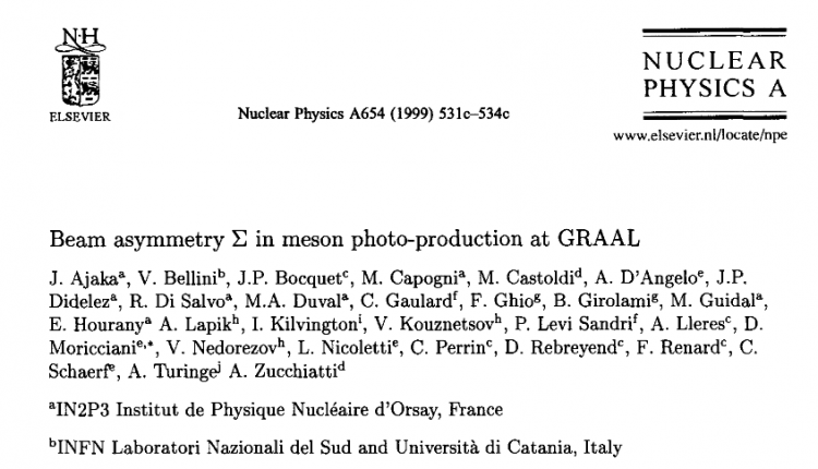 Author links open overlay panelJ. Ajaka, et al., 1999, Beam asymmetry Sigma in meson photoproduction at GRAAL, Published in Nuclear Physics A vol. 654 issue 1 July 26, 1999. p. 531c-534c